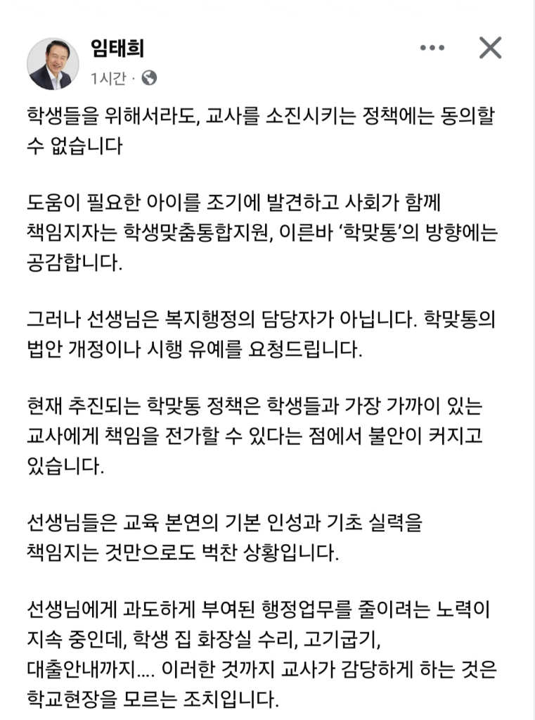 경기도교육감님께 학맞통은 교사의 업무가 아닌