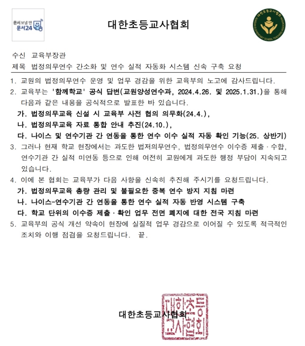 지금 학교 현장은 ‘법정의무연수 지옥’입니다.