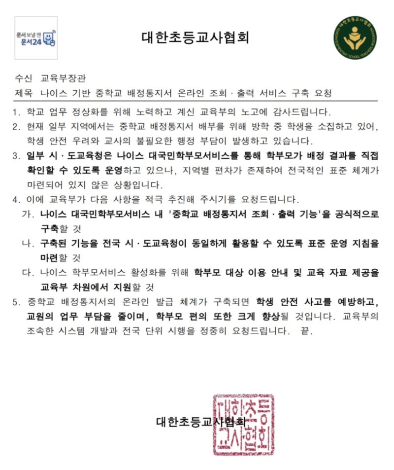 ‘배정통지서 조회·출력 기능’ 공식 구축
