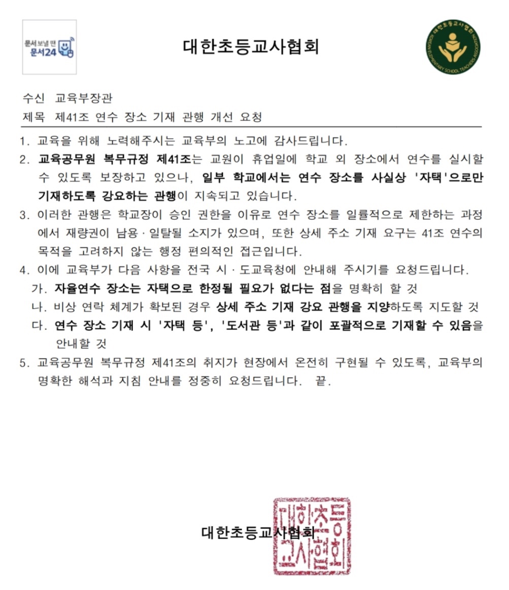 대한초등교사협회는 교육부에 요구했습니다